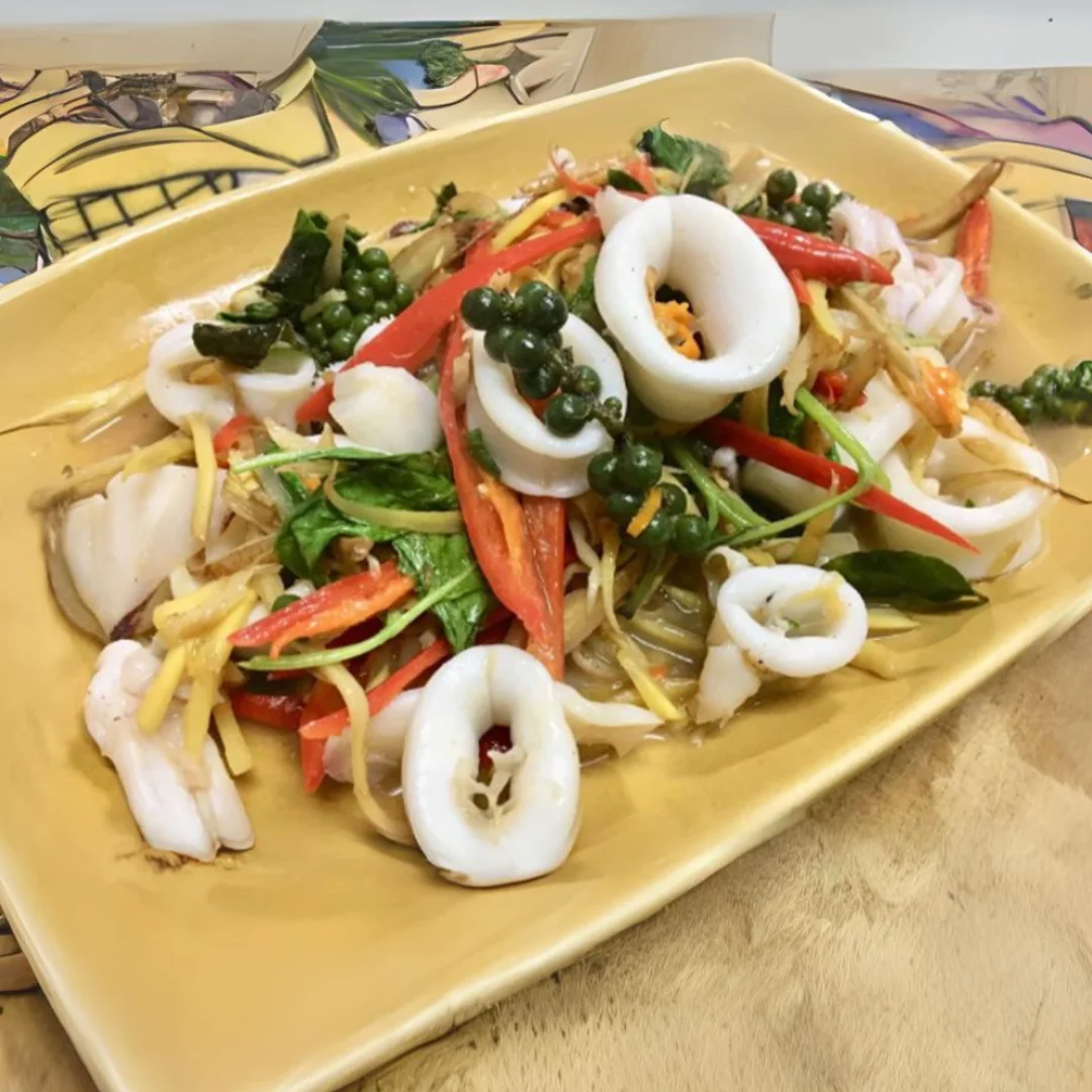 หมึกผัดฉ่า 250 - 350 baht (Depends on size)